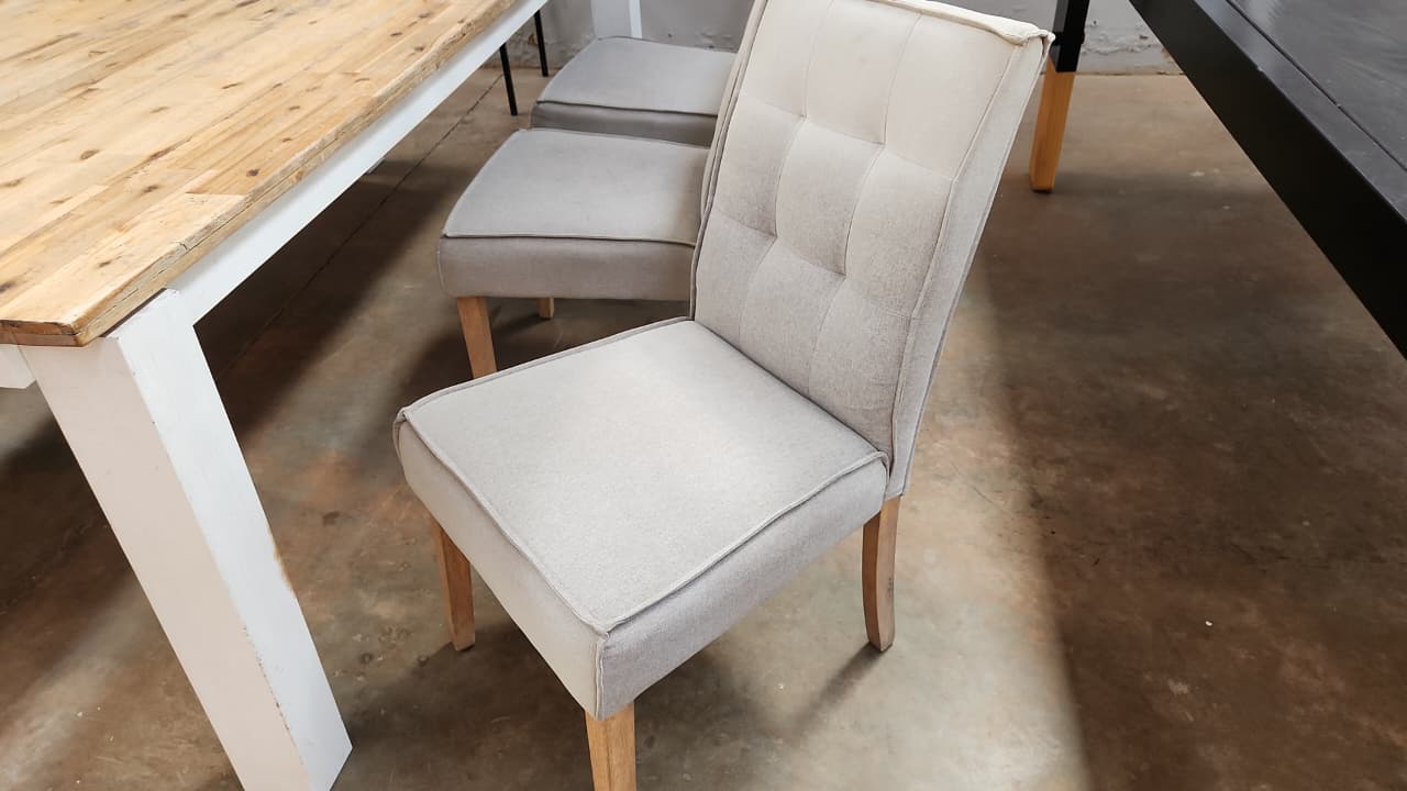 Coricraft 8 Seater patio set with 3 beige chairs and a bench